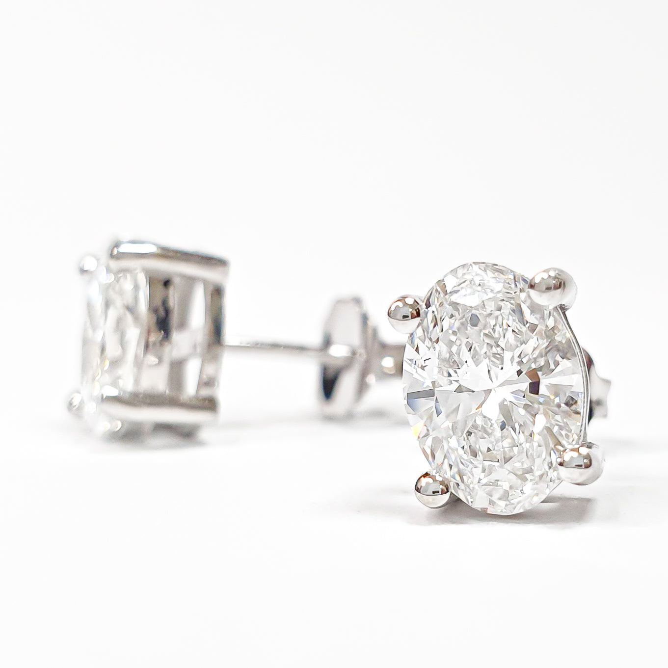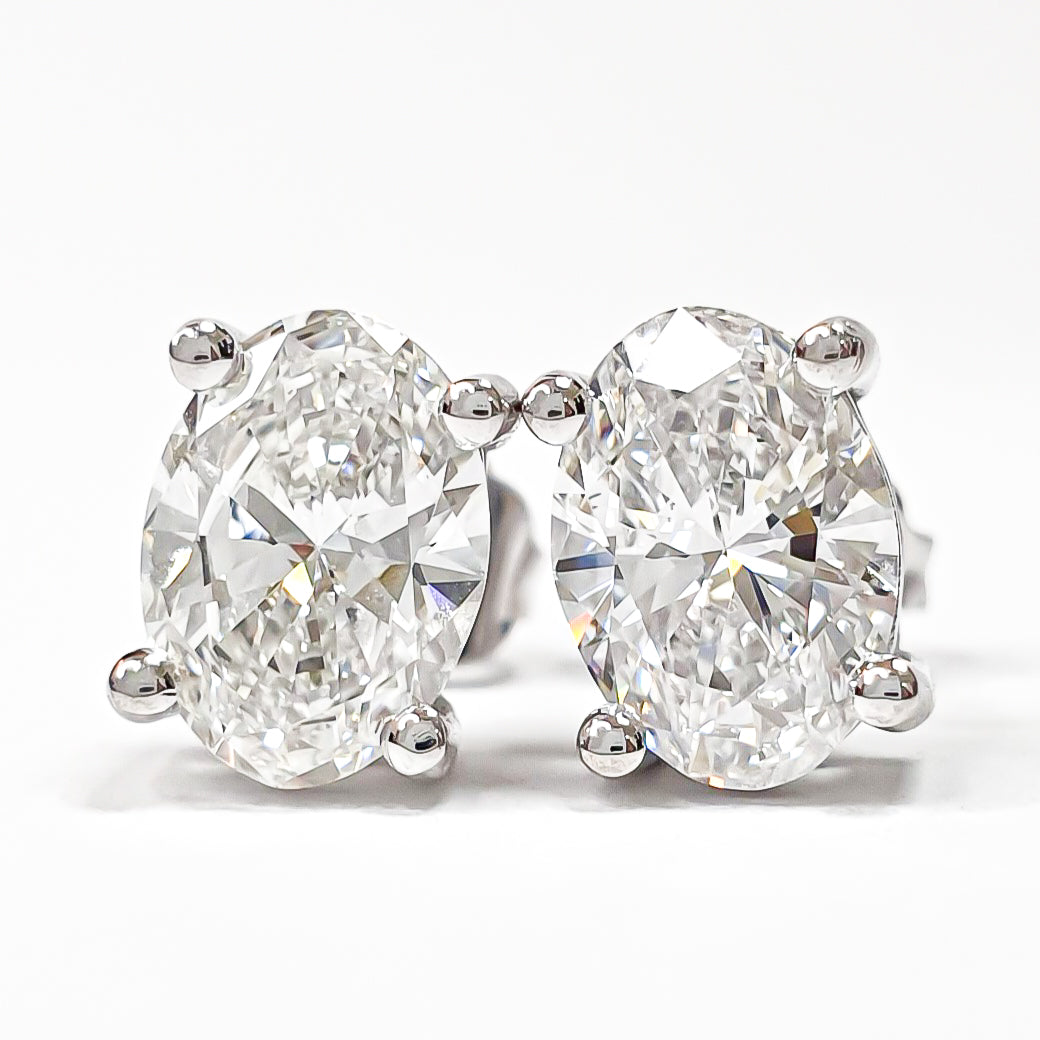 Oval Brilliant Earrings – Lab Grown Diamonds – 14K/18K White Gold – Stud Earrings