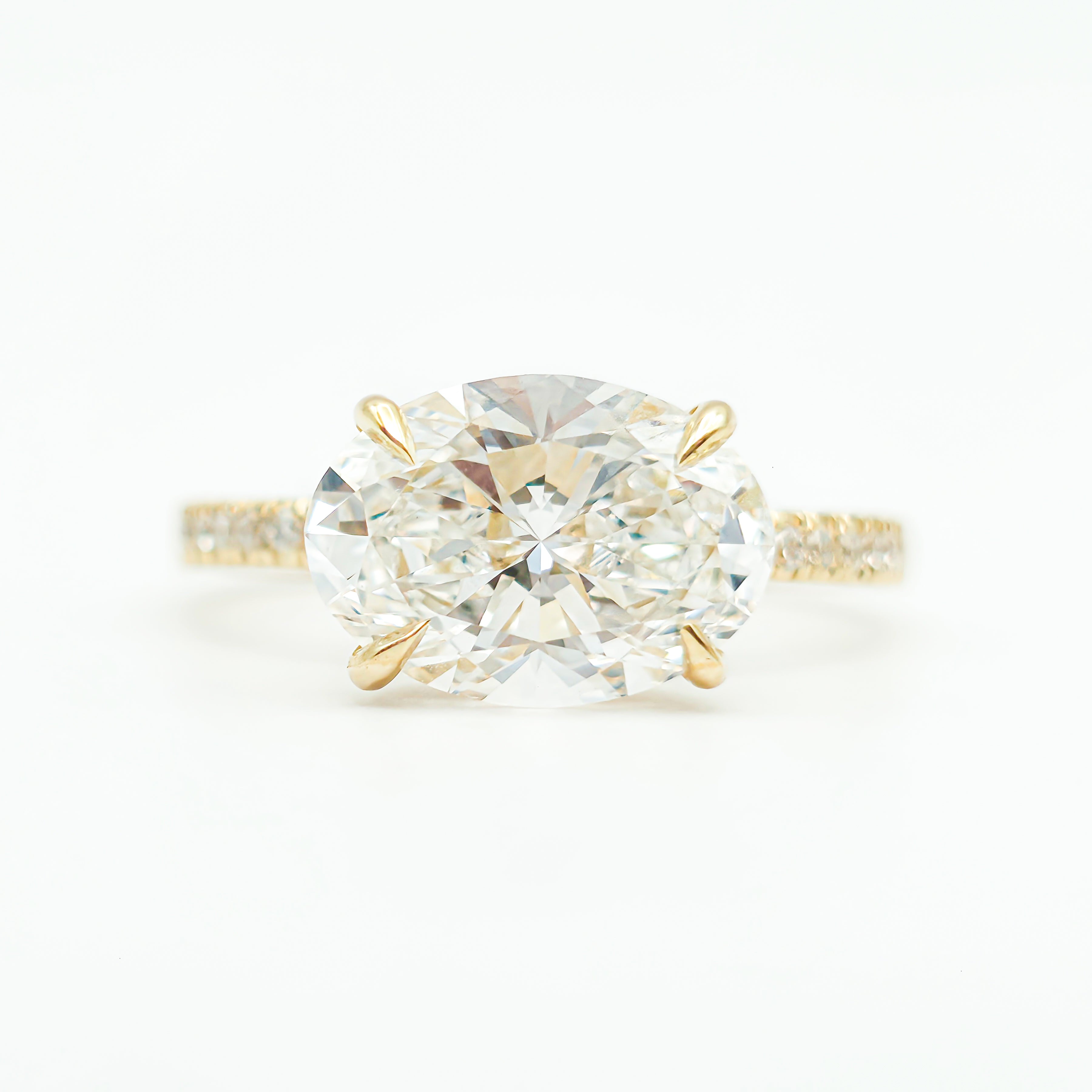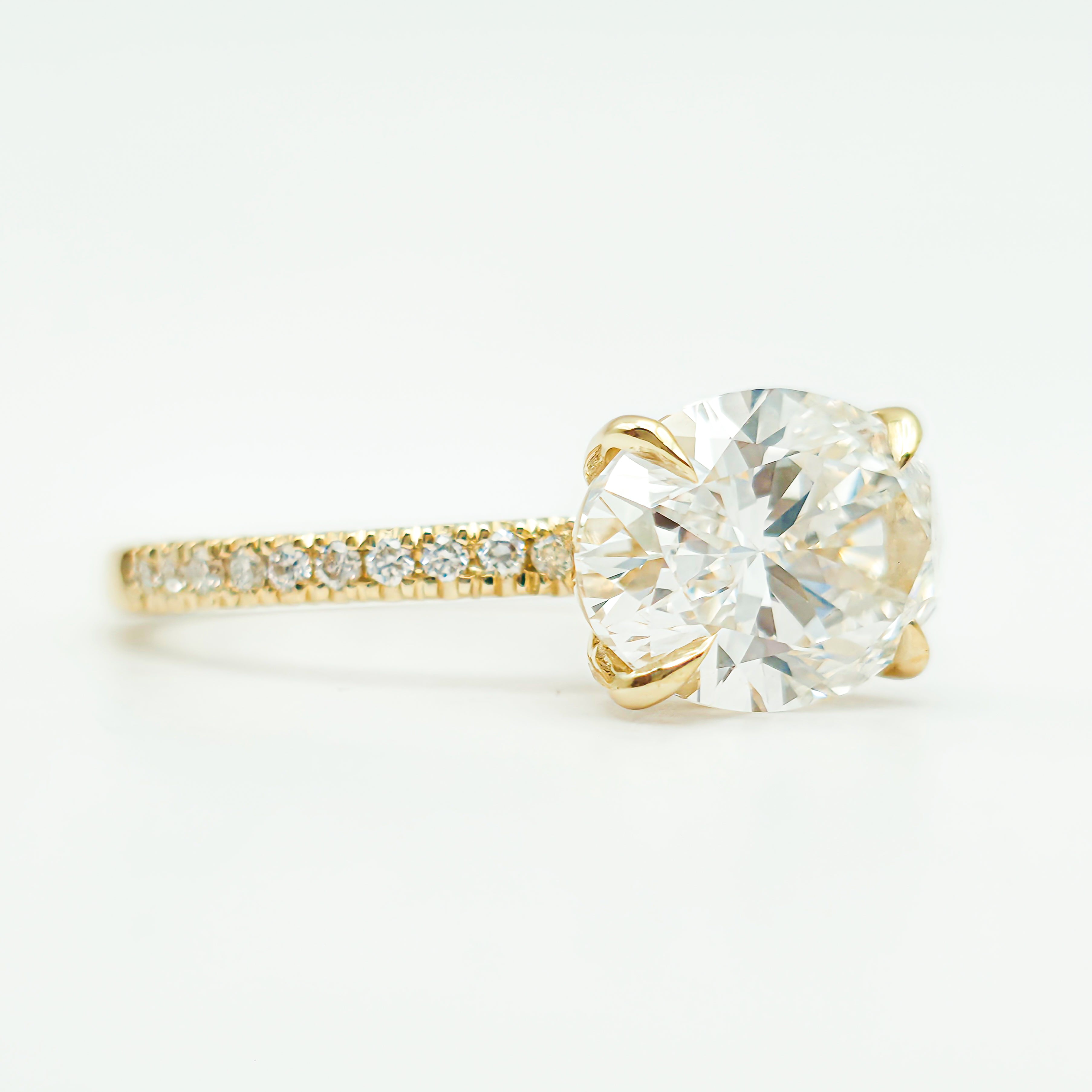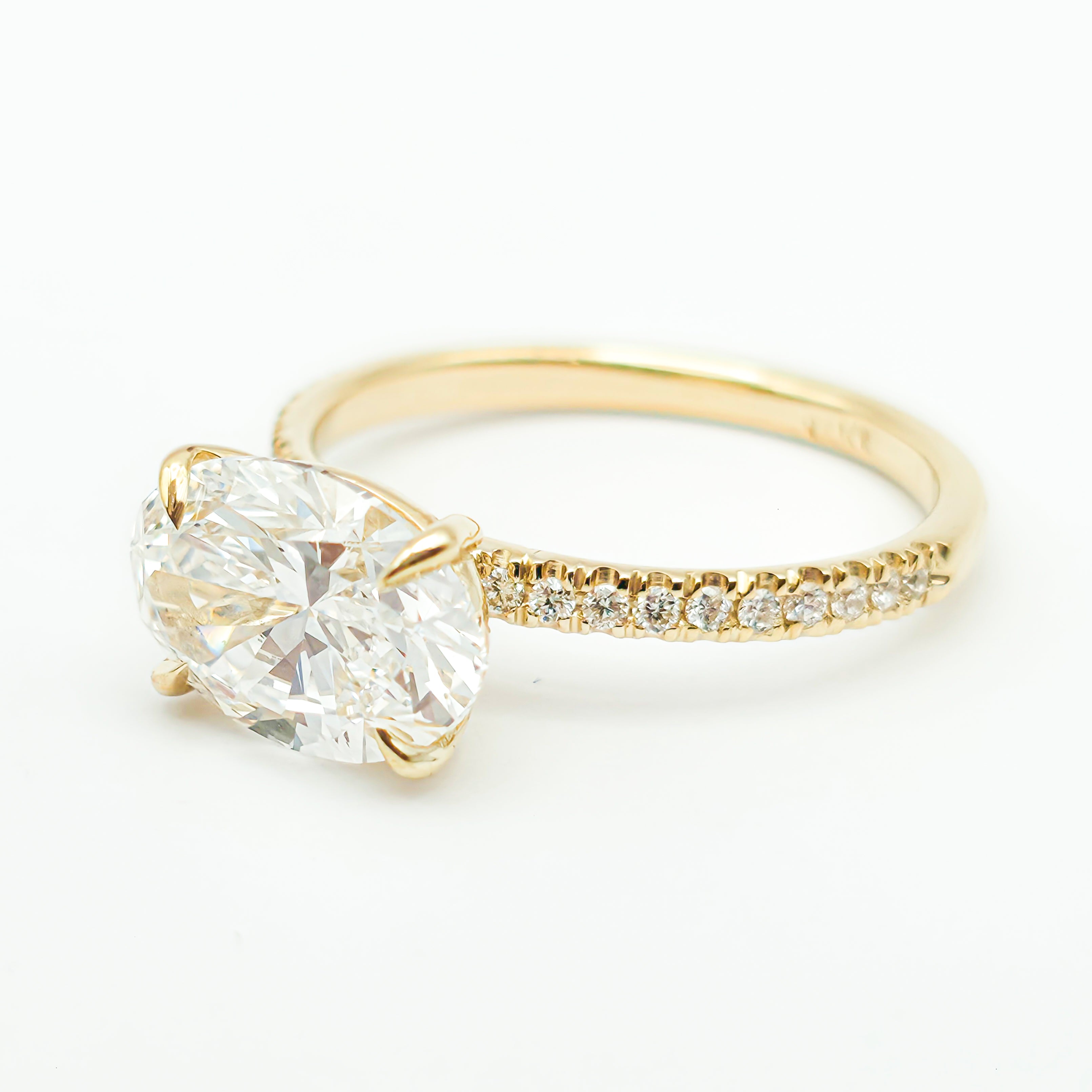 Oval Brilliant Pavé Ring – Lab Grown Diamond – 14K/18K Yellow Gold – 20 Side Stones