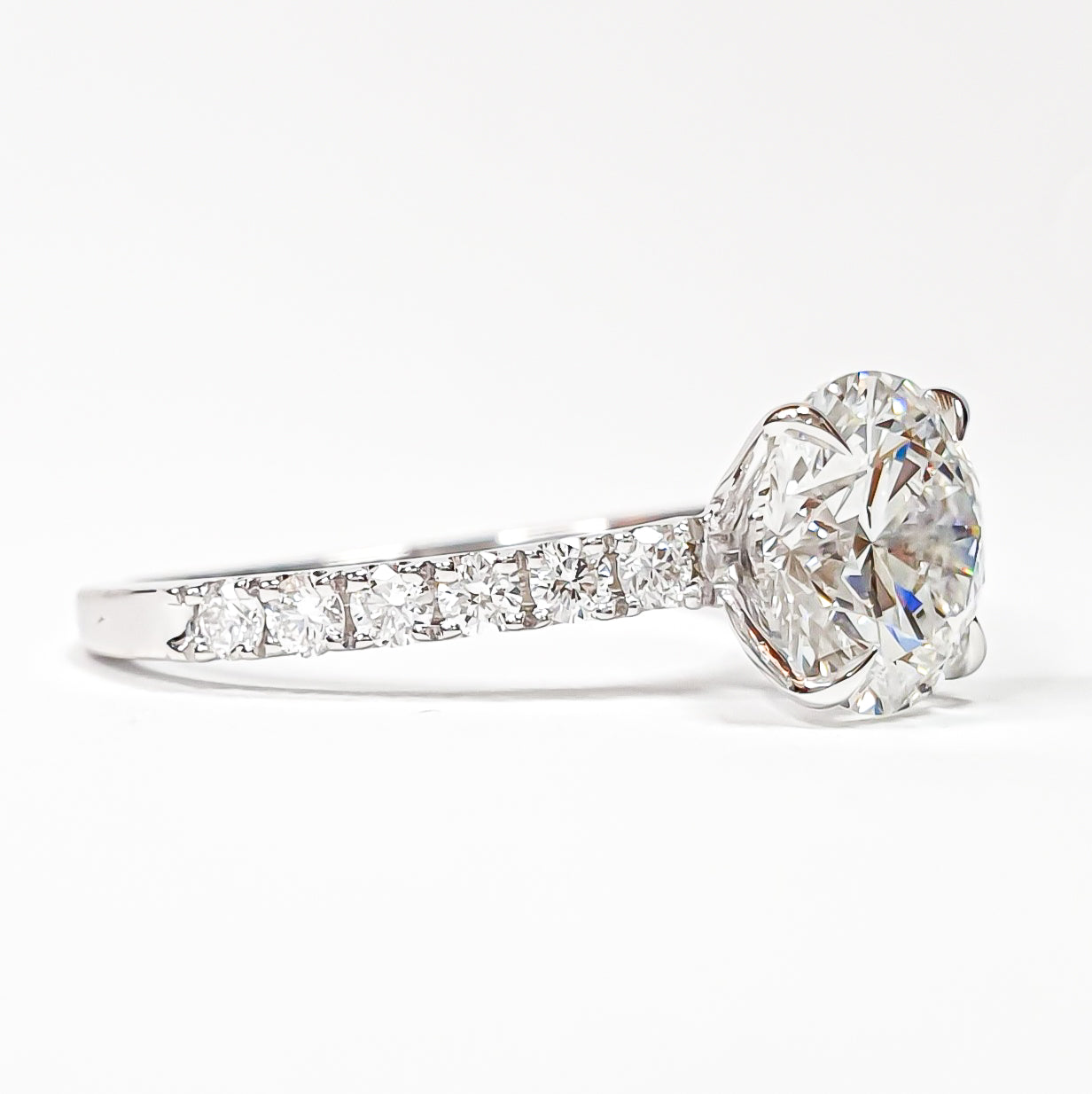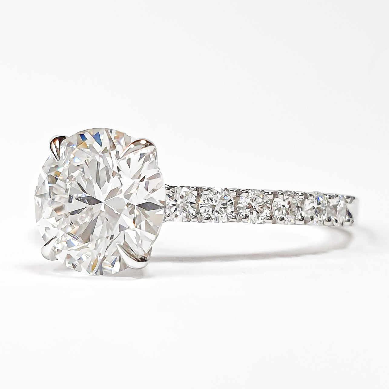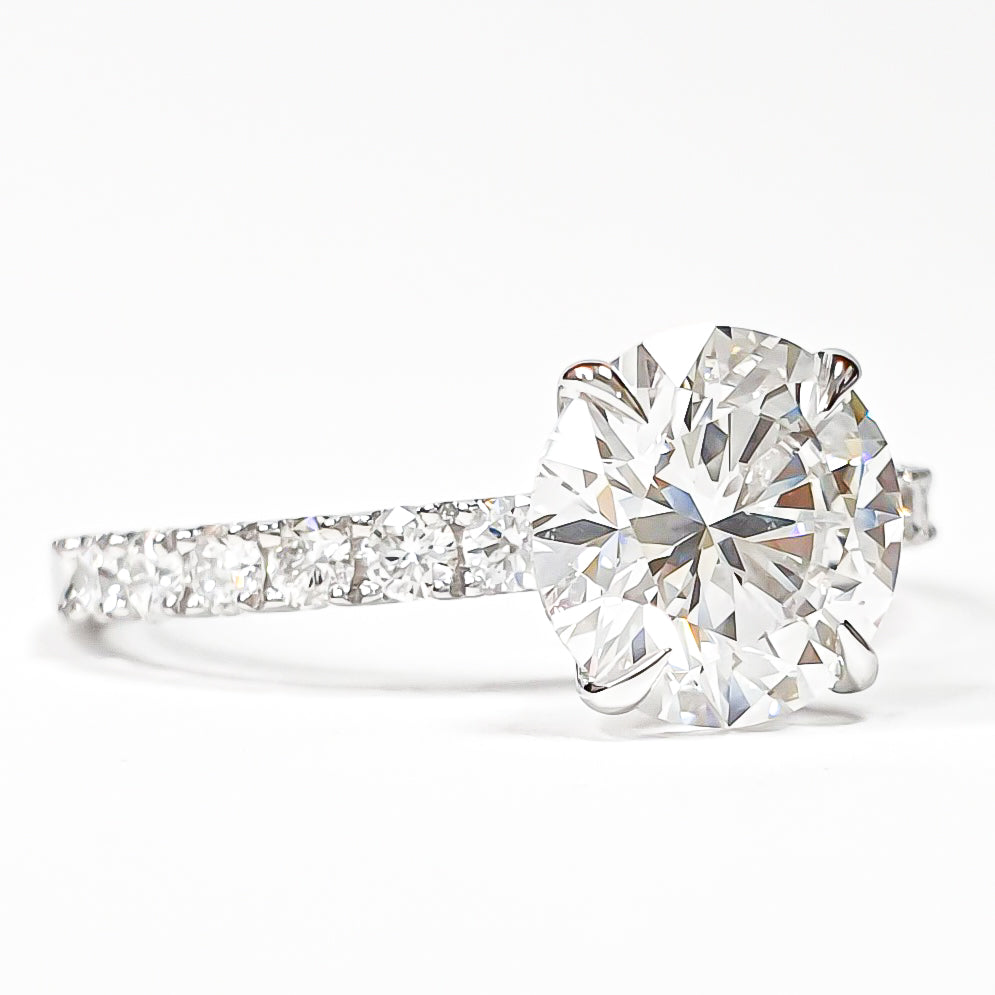 Round Brilliant Pavé Ring – Lab Grown Diamond – 14K/18K White Gold – 12 Side Stones