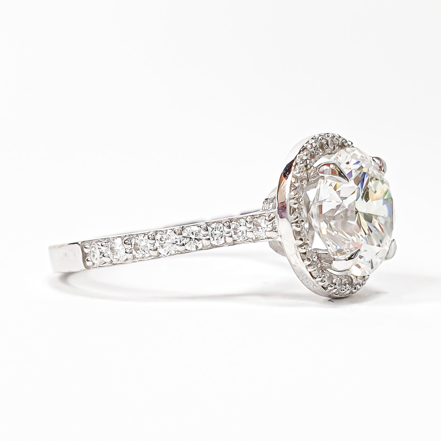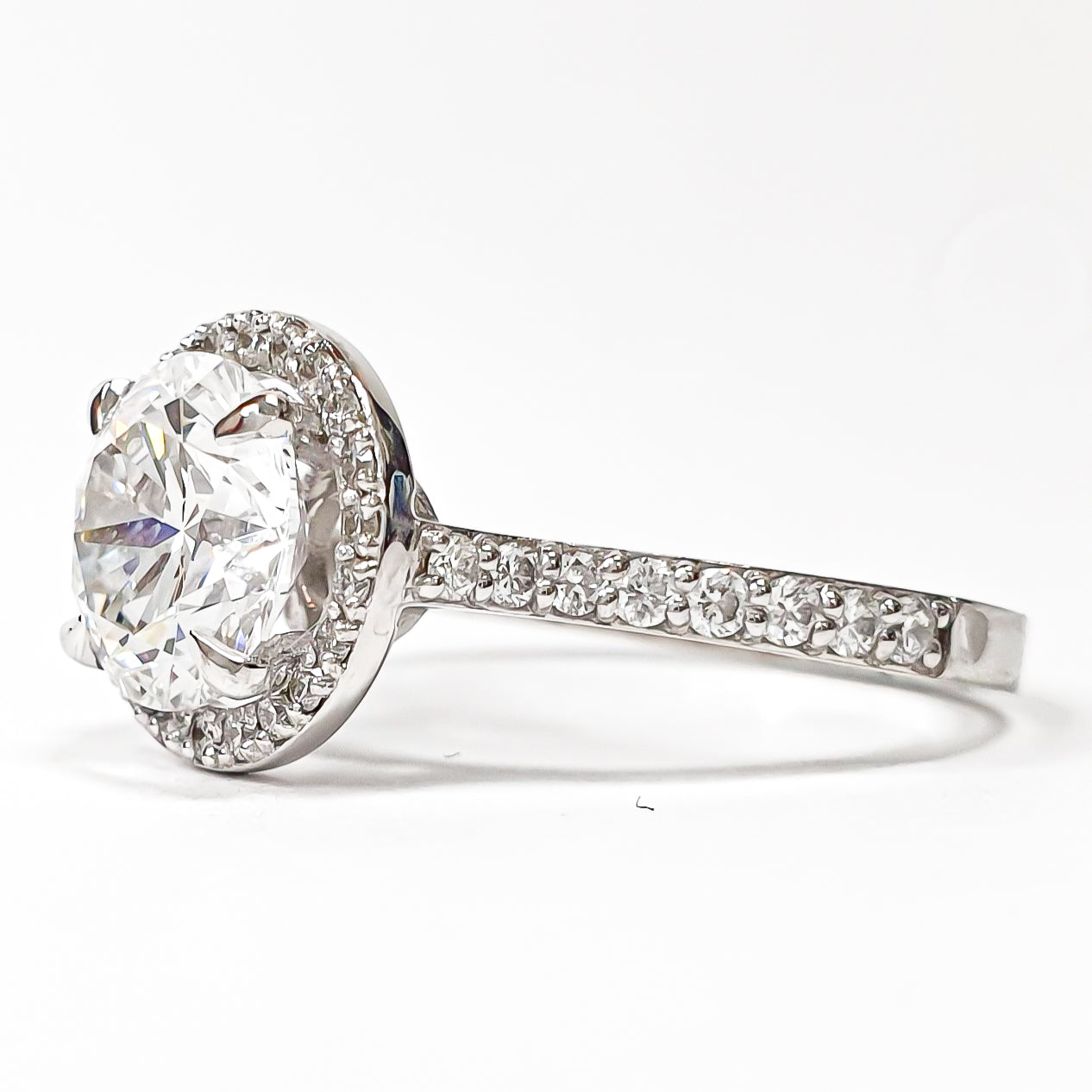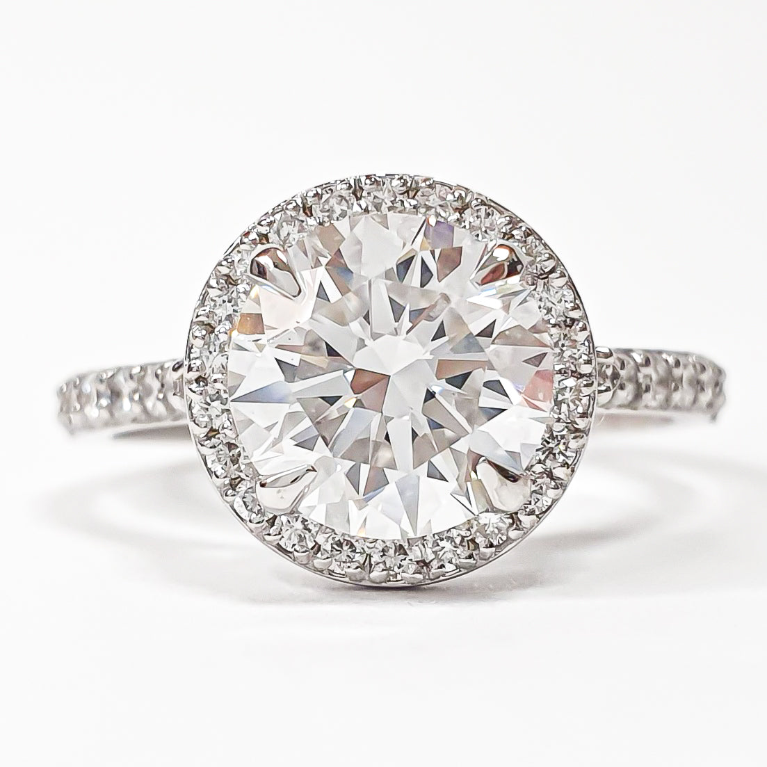 Round Brilliant Pavé with Halo Ring – Lab-Grown Diamond– Lab Grown Diamond – 14K/18K White Gold – 38 Side Stones