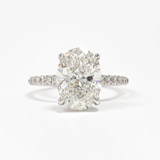 Oval Brilliant Pavé and Hidden Halo Ring – Lab Grown Diamond – 14K/18K White Gold – 52 Side Stones
