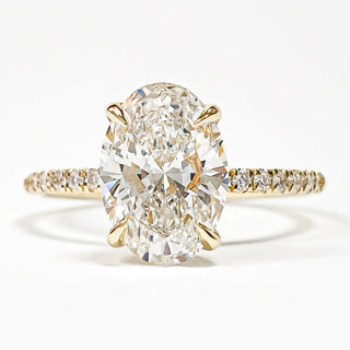 Oval Brilliant Pavé Ring with Hidden Halo – Lab Grown Diamond – 14K/18K Yellow Gold – 44 Side Stones
