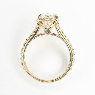 Oval Brilliant Pavé Ring with Hidden Halo – Lab Grown Diamond – 14K/18K Yellow Gold – 28 Side Stones