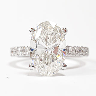 Oval Brilliant Pavé Ring – Lab Grown Diamond – 14K/18K White Gold – 12 Side Stones