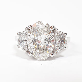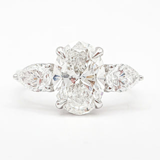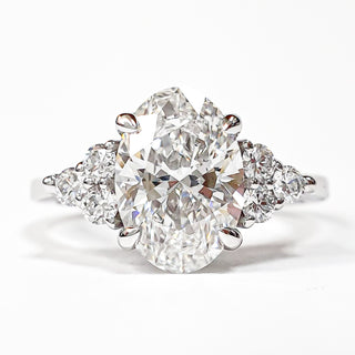 Oval Brilliant 3 Stone Ring – Lab Grown Diamond – 14K/18K White Gold – 2 Side Stones