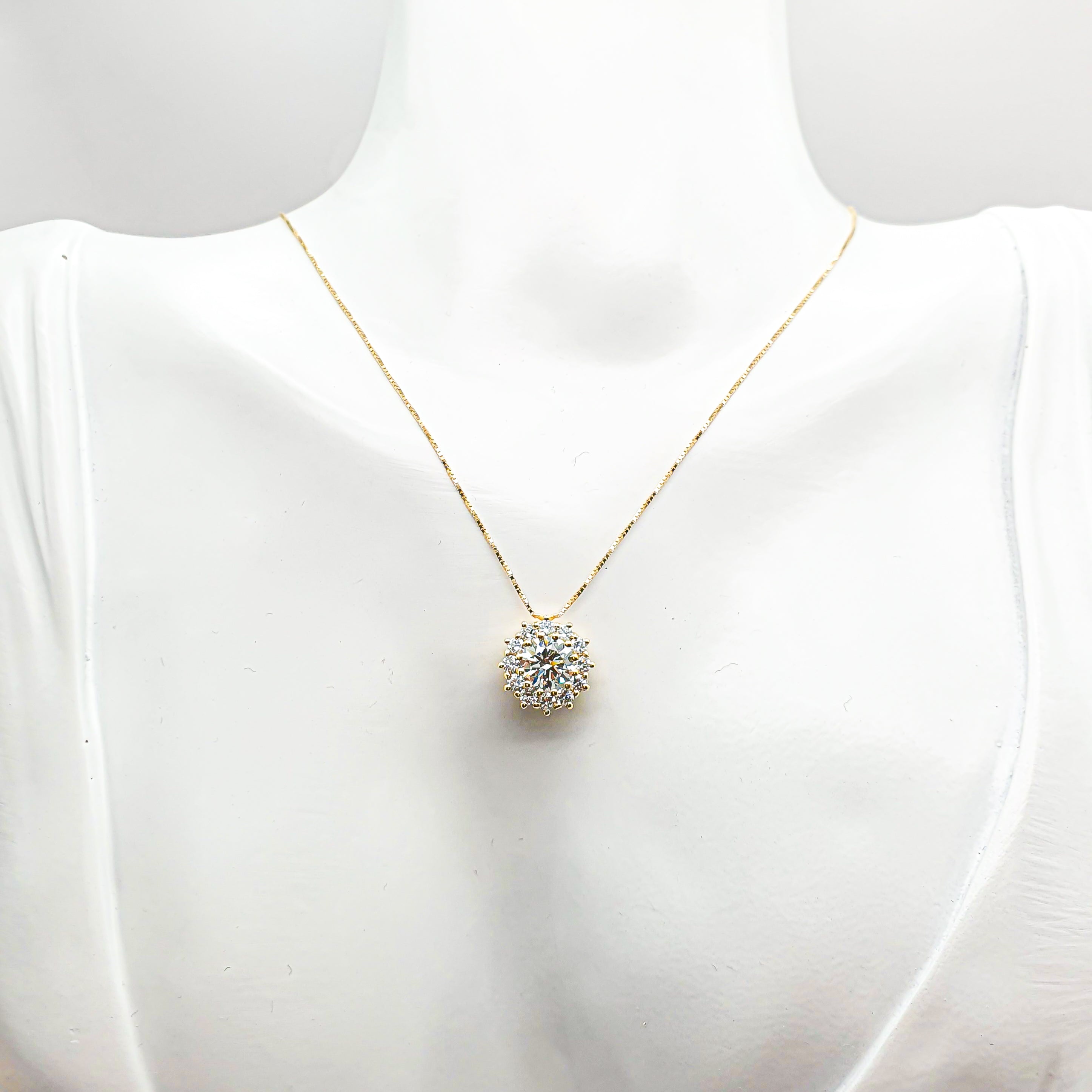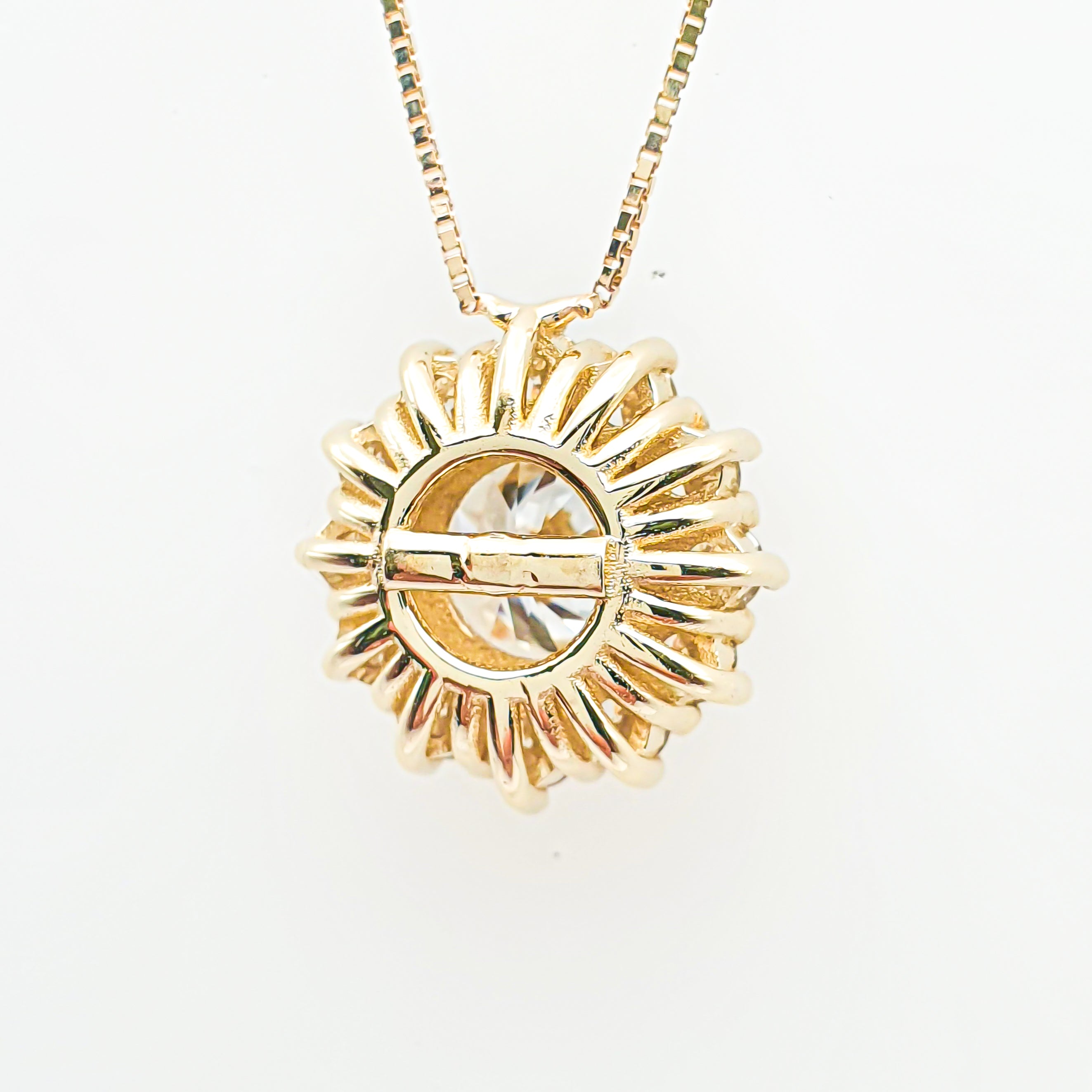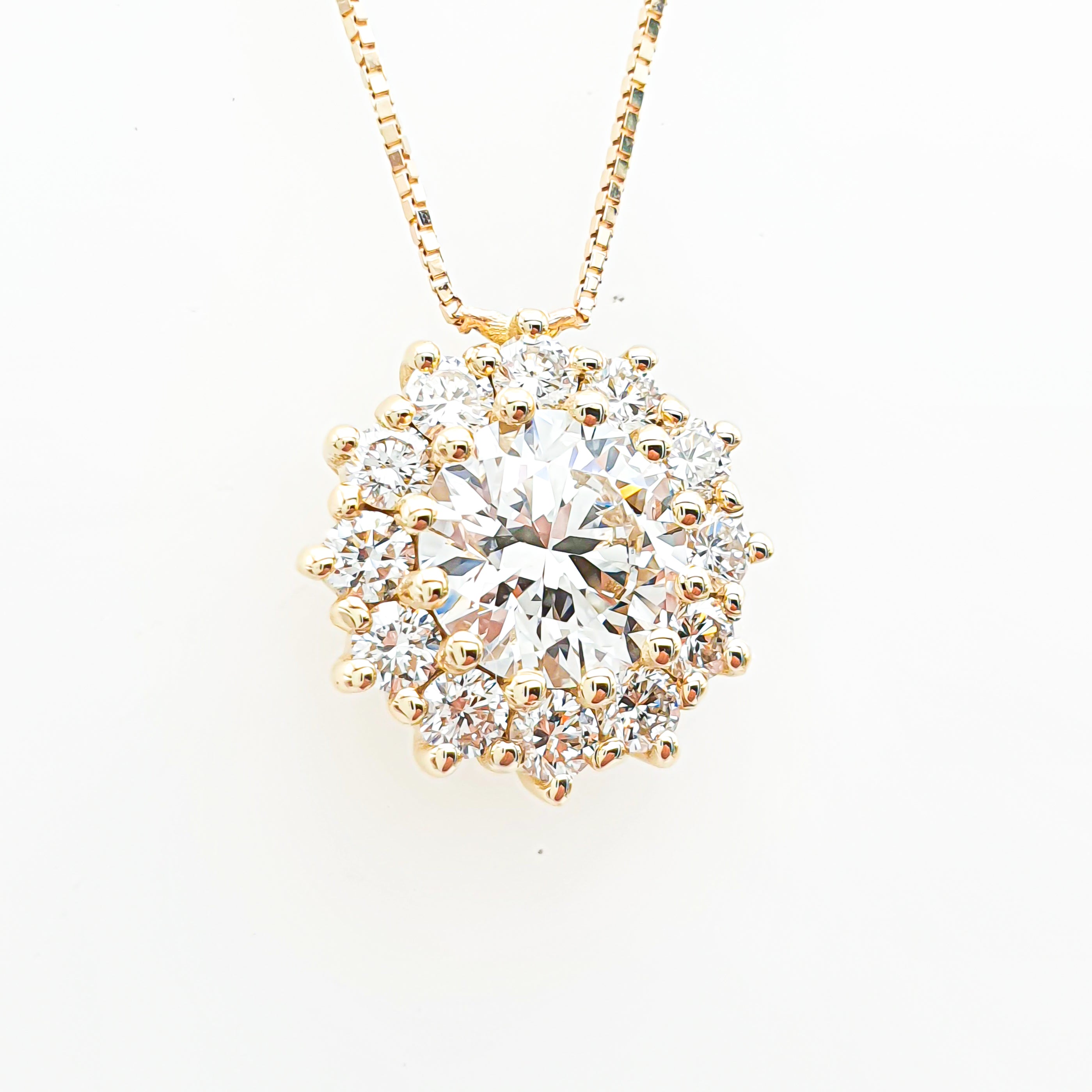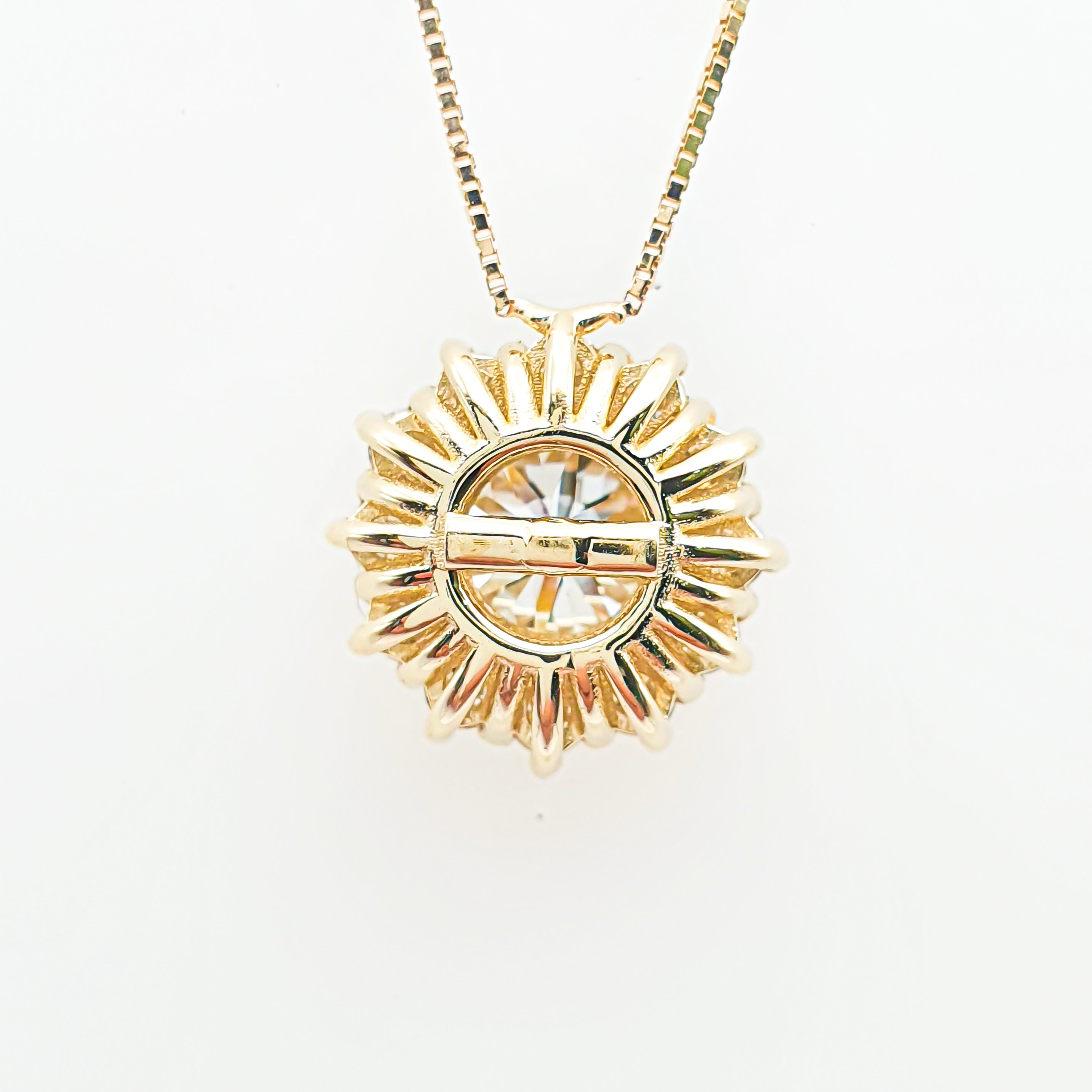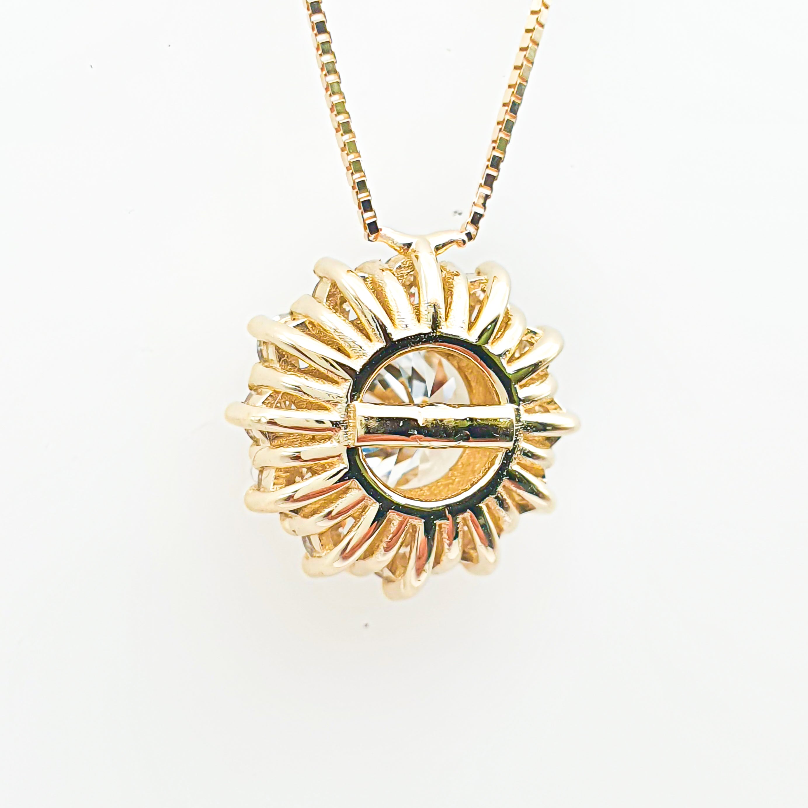 Necklace with Pendant 1.54 Carat Round Brilliant – Lab Grown Diamonds – 2.48 Gram 14K Yellow Gold – 12 Side Stones