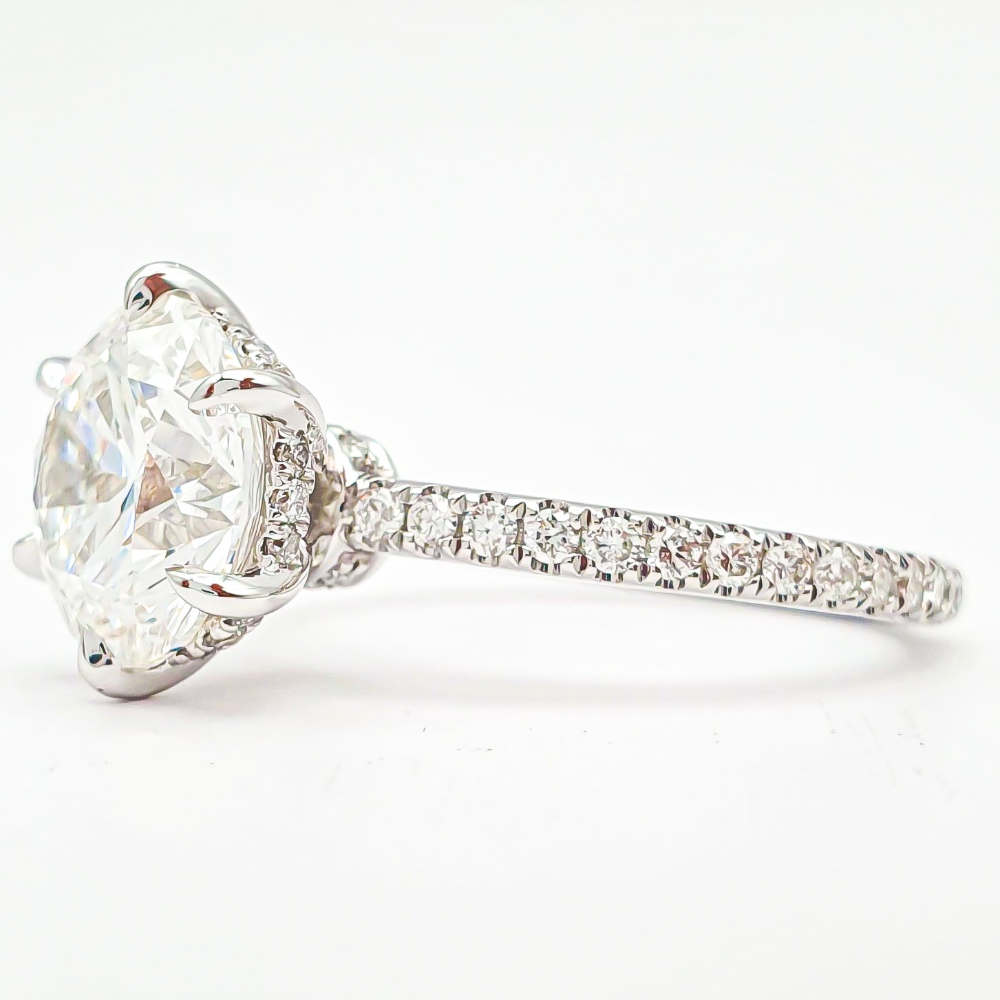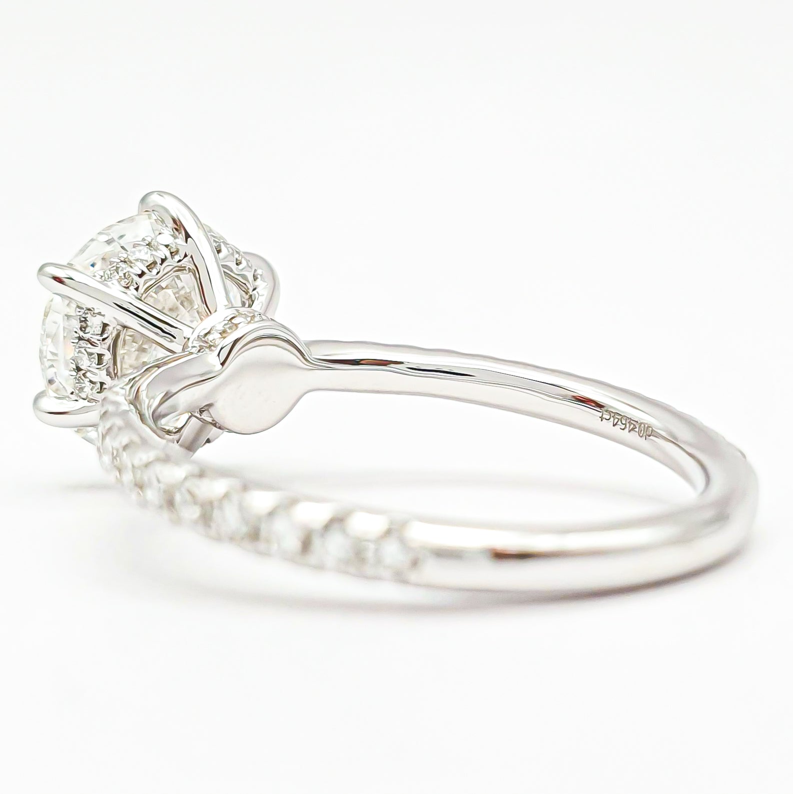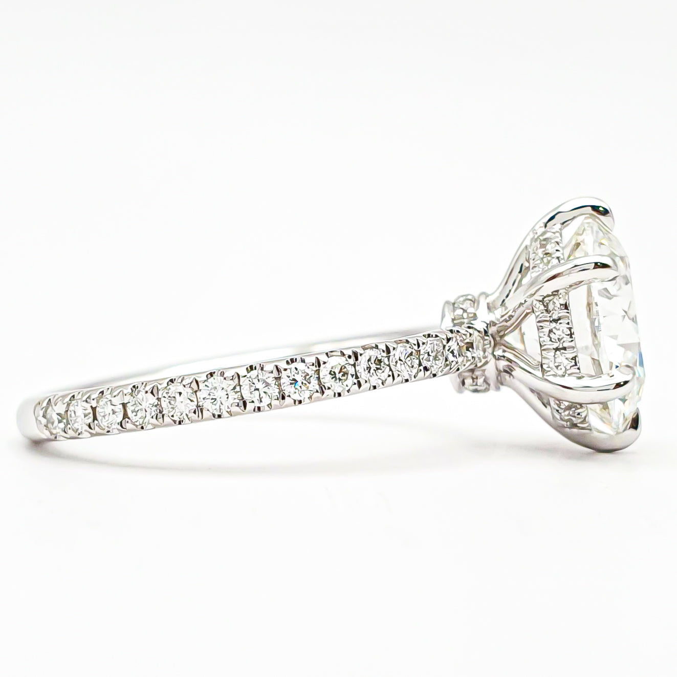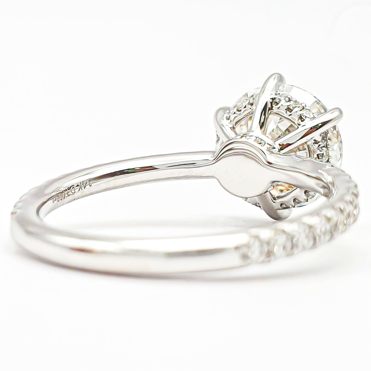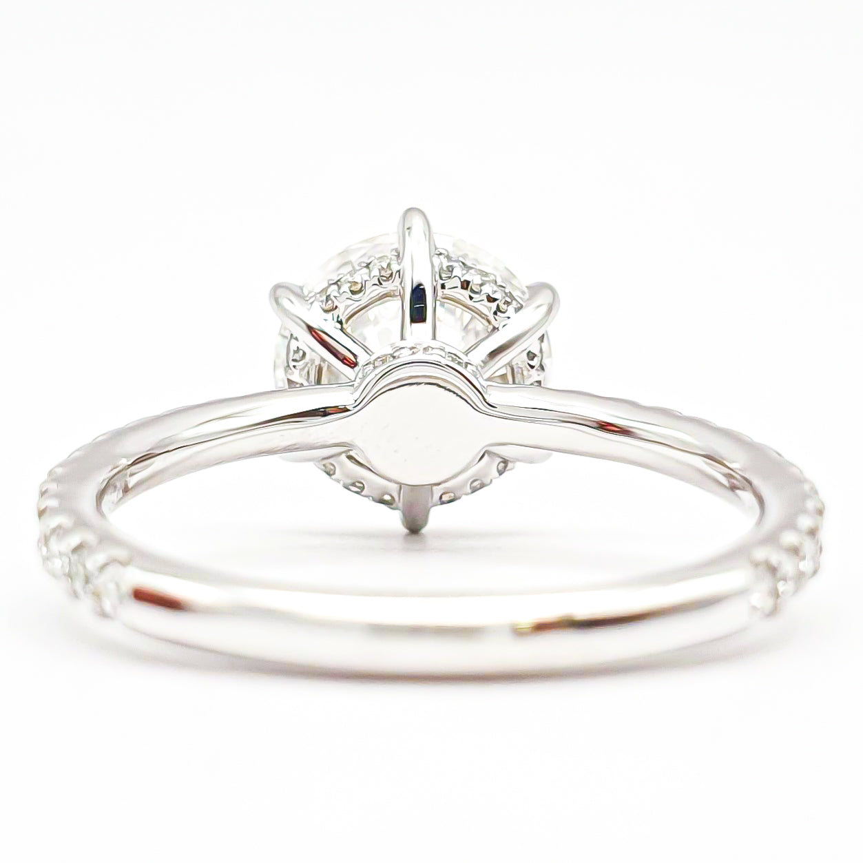 טבעת עגול סוליטר 6 שיניים בשיבוץ פאווה והידן היילו – יהלום מעבדה – זהב לבן 14/18 קראט